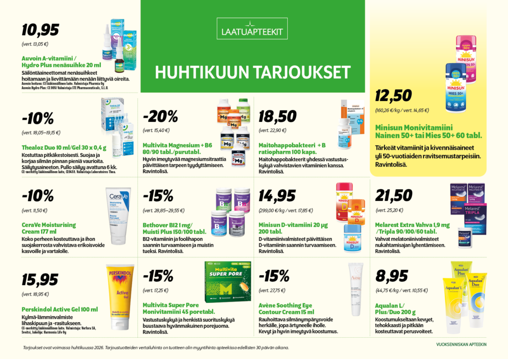 Huhtikuun tarjoukset Vuoksenniskan apteekissa